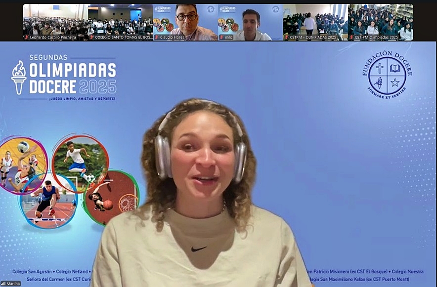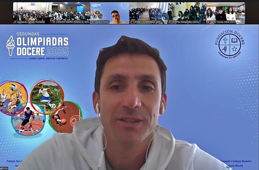 En una sesión cargada de motivación y sabiduría, los destacados deportistas Martina Weil (atletismo) y Milovan Mirosevic (fútbol) compartieron sus experiencias de alto rendimiento con los estudiantes de los colegios Docere que se preparan para competir en las 2° Olimpiadas Docere. El encuentro virtual fue una valiosa instancia de formación, poniendo el foco no solo en el éxito, sino en el proceso y la mentalidad que lo sustenta.